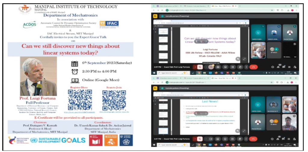 Event—I: Guest Talk on “Can we still discover new things about linear systems today?” by Prof. Luigi Fortuna, Full Professor, Department of Electrical, Electronic and Computer Engineering, University of Catania, Italy
