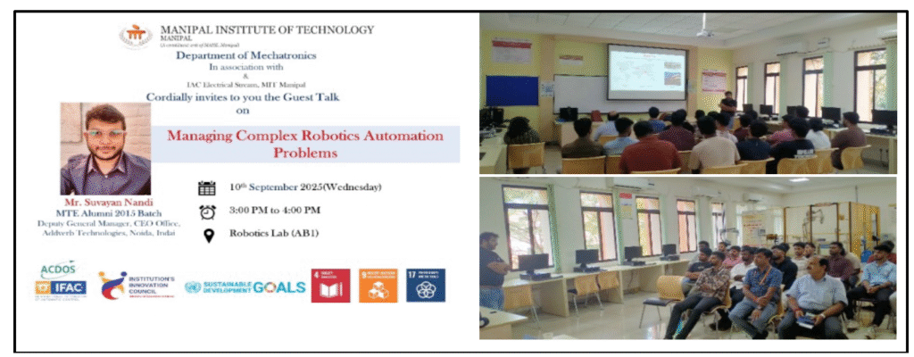 Event—II: Guest Talk on “Managing Complex Robotics Automation Problems” by Mr. Suvayan Nandi, Deputy General Manager, CEO Office, Addverb Technologies, Noida (MTE Alumni, 2015 Batch) 10th September 2025